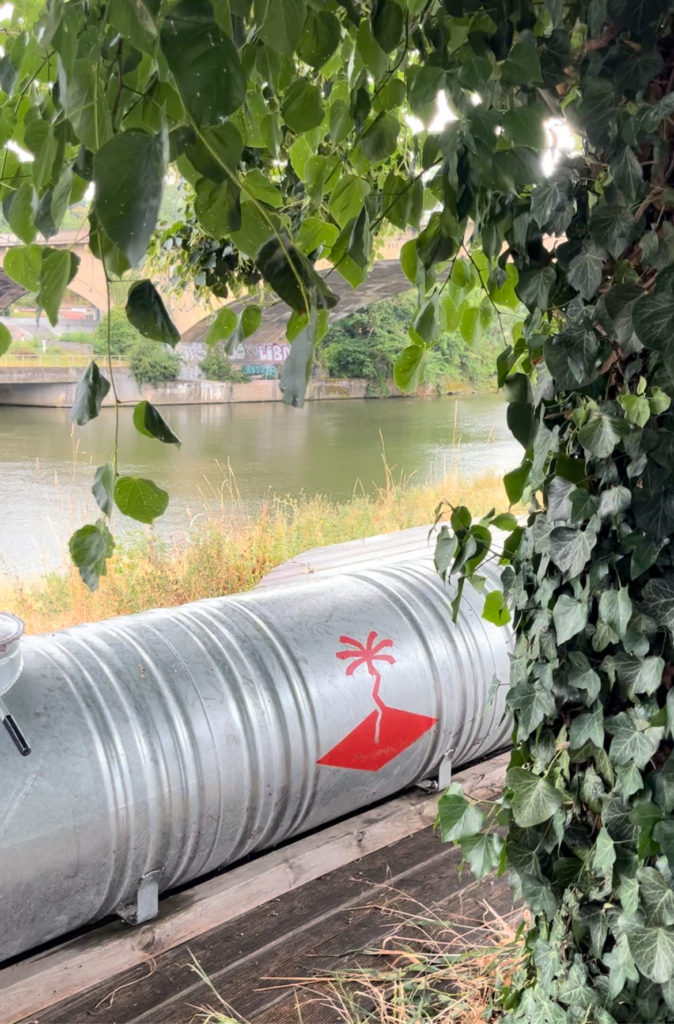 Endlich war alles bereit und wir genossen gemeinsam mit dem Kollektiv der Neckarinsel, das uns Getränke an der Bar anbot, das Essen . Zur Feier des Abends zeigte sich die Sonne und wir genossen Musik und Getränke auf der Terrasse der Neckarinsel.